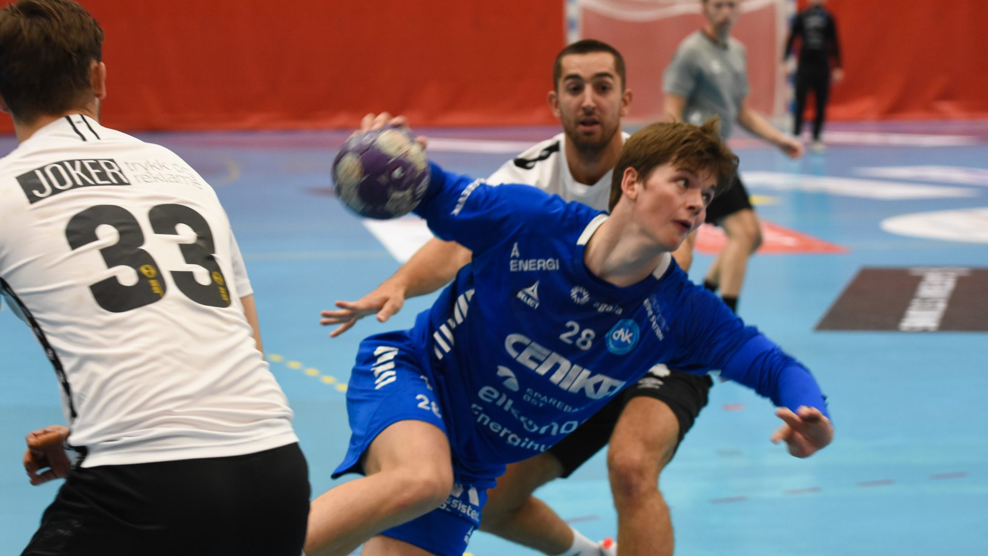 Sondre Ovid Skovli (delvis skjult) og Espen Gommerud Våg, i tillegg til Simen Vatne Andersen, var nøkkelen til DHK fantastiske forsvarsspill mot Elverum. Roy M. Johnsen
