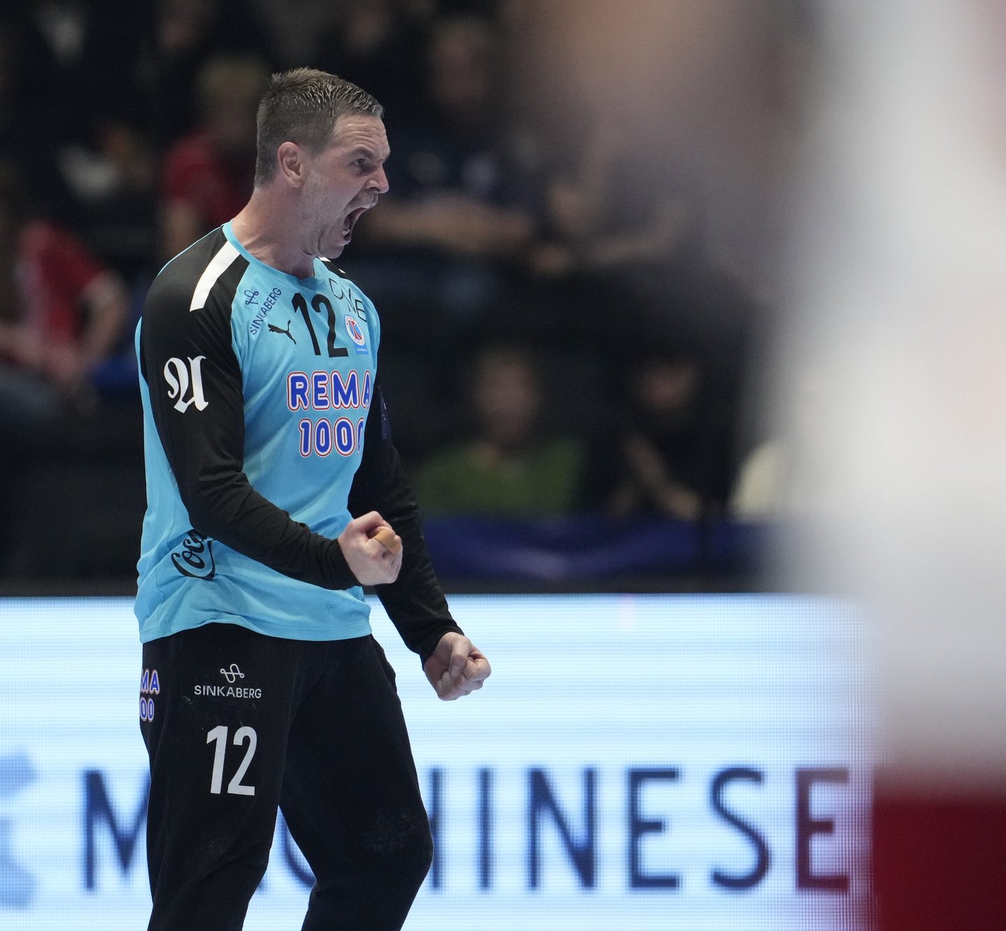 Det ser litt dramatisk ut, men Isak Steinsson redder til slutt skadet med venstrehånden.