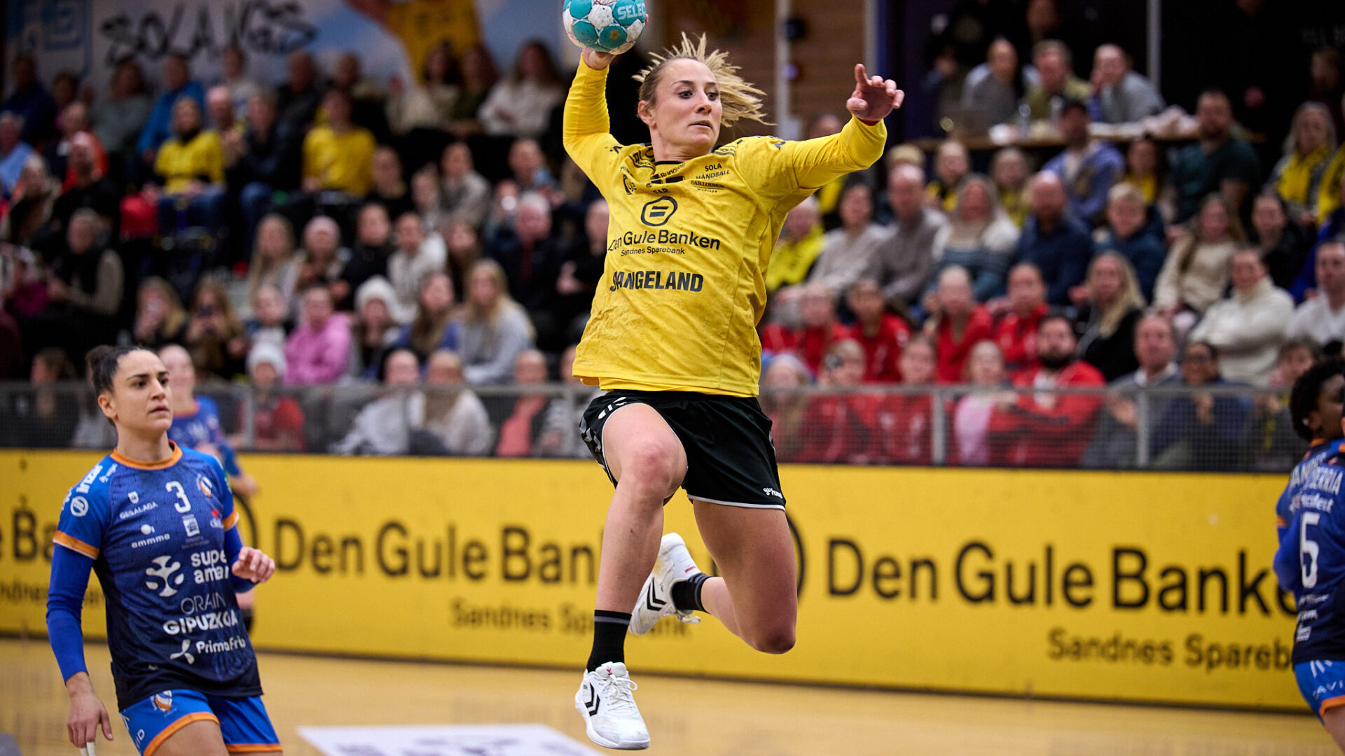 Hjemmelaget lot seg ikke påvirke nevneverdig av dette, og Solas #77 viste virkelig at hun satt pris på og igjen kunne spille europa-kamper, etter at hun var på trenerbenken i fjor. Med ni mål i første omgang var Camilla sterk bidragsyter til at Sola kunne gå til pause på stillingen 19-13.