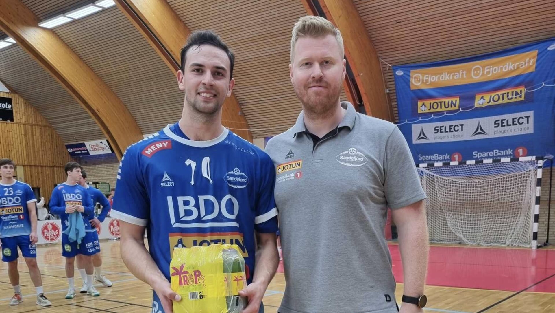 Sandefjord: Sander Akerlie (25 %), Johan Bergqvist (35 %), Endre Svåsand 5, Espen Røhmer, Magnus Galabuzi Segujja 2, Sander Ree-Lindstad, Johannes Gurrich 6, Sander Wennberg Linderud 6, Andreas Oustorp 1 (1), Martin Lundquist, Noah Allerød, Fredrik Engelstad, Lasse Døsen 1, Erlend Strand 1, Anders Jansrud, Jakub Petrzela 1.