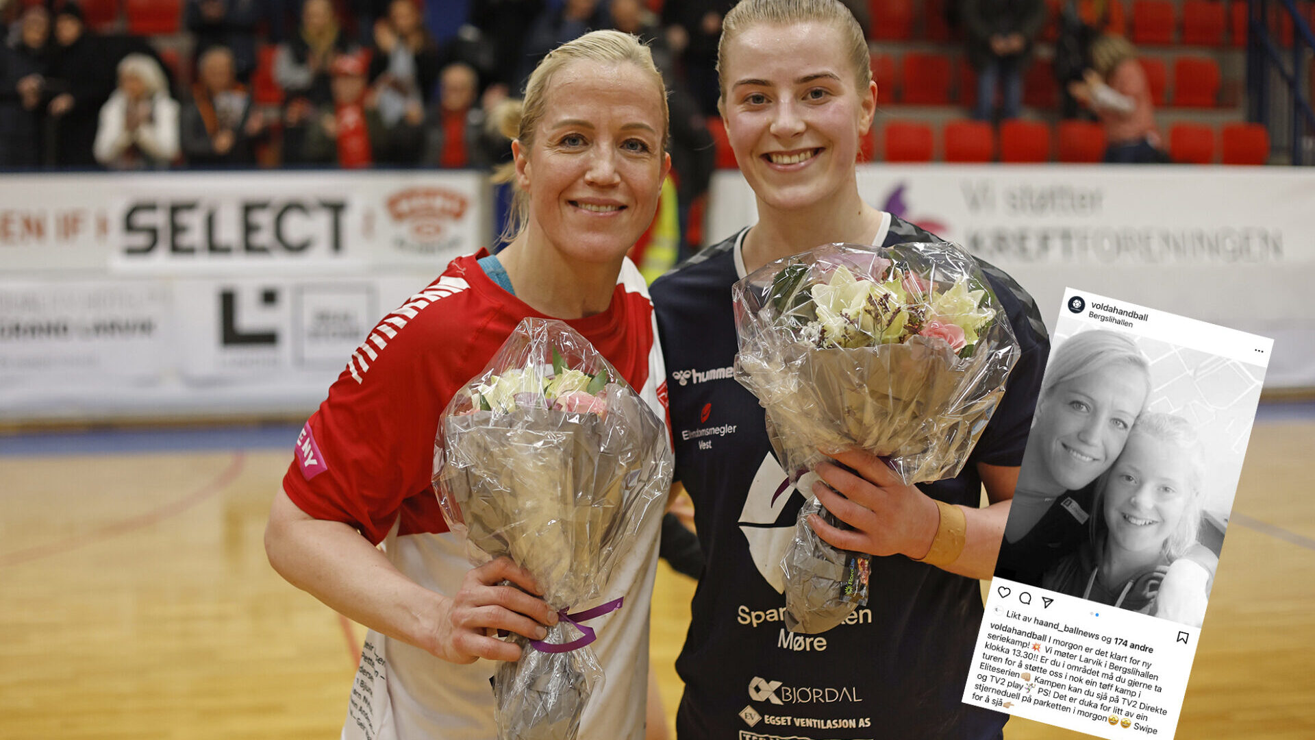 Heidi Løke fyller 40 år mandag, men er fortsatt best. Søndag møtte hun Volda og deres linjespiller Fride Stølen, som for ti år siden fikk tatt et bilde sammen med idolet.