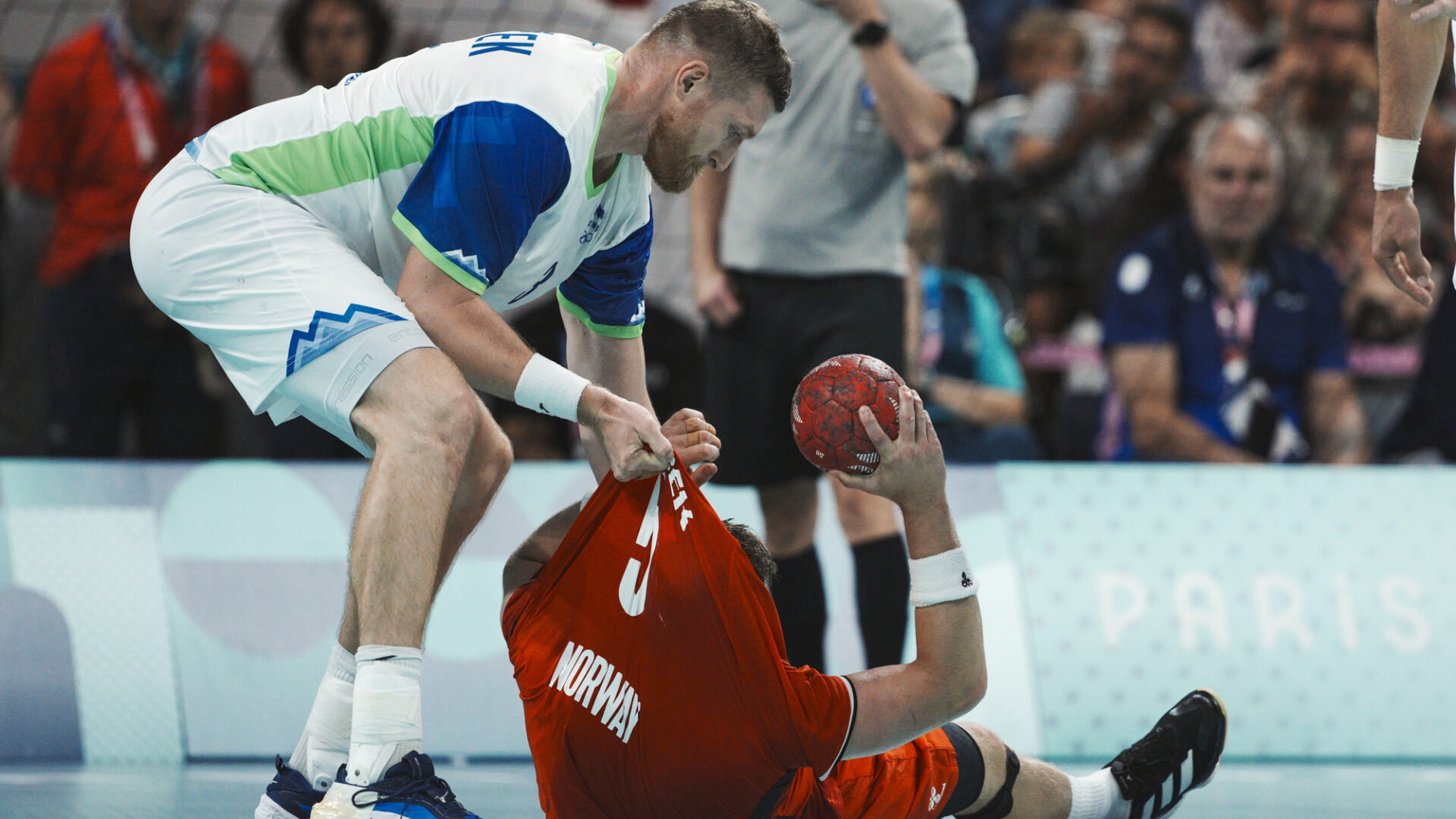 Optimismen forsvant fort. Aleks Vlah dukket opp igjen med sin tiende kasse for kvelden. Deretter tok det full fyr i Lille. Slovenernes erfarne stjernespiller Dean Bombac skjøt Torbjørn Bergerud rett i planeten og fikk direkte rødt kort.