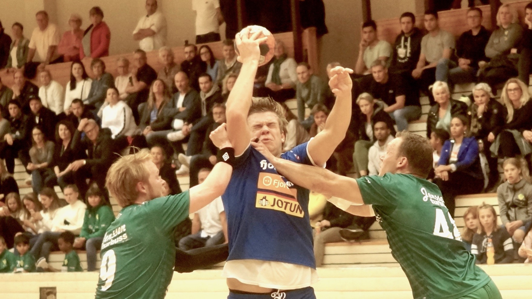 Magnus Langeland, nå Kolstad, var sentral da Fjellhammer og Sandefjord spilte 25-25 i Lørenskoghallen i 2019. Blir det like spennende i kveld? Foto: Sandefjord Håndball