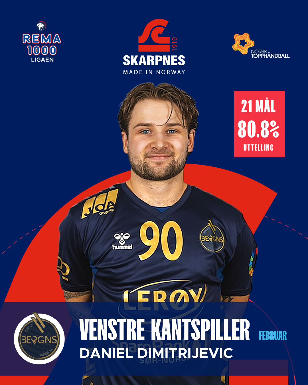 Med 21 mål på fire kamper har Daniel Dimitrijevic levert en strålende februar for Bergen. Et snitt på 5,3 mål per kamp og en uttellingsprosent på hele 80,8 forteller om en kantspiller som tar vare på sjansene sine. I tillegg står han med én assist og et snitt på 3,6 i MEP. Dimitrijevic har vært effektiv, presis og en konstant trussel fra venstrekanten.