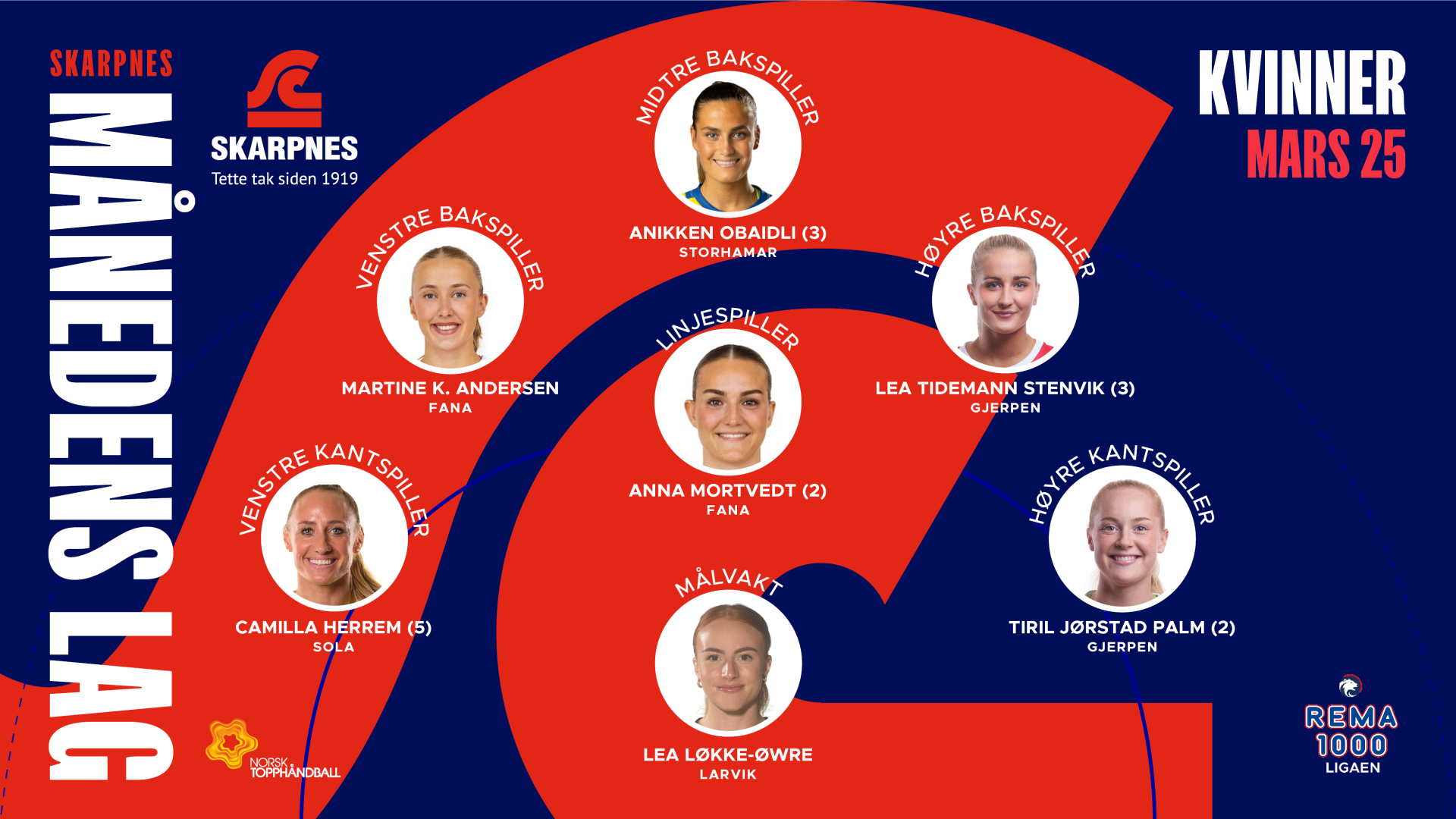 Mars har vært en måned med høyt nivå, sterke individuelle prestasjoner og flere spillere som har markert seg tydelig i REMA 1000-ligaen. Her er de sju spillerne som utgjør Skarpnes Månedens Lag for mars: