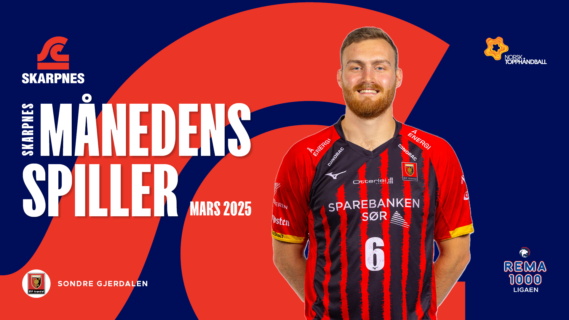 Sondre Gjerdalen fra ØIF Arendal er kåret til Skarpnes Månedens Spiller i REMA 1000-ligaen. Linjespilleren har levert sterke og stabile prestasjoner gjennom mars og inn i april.
