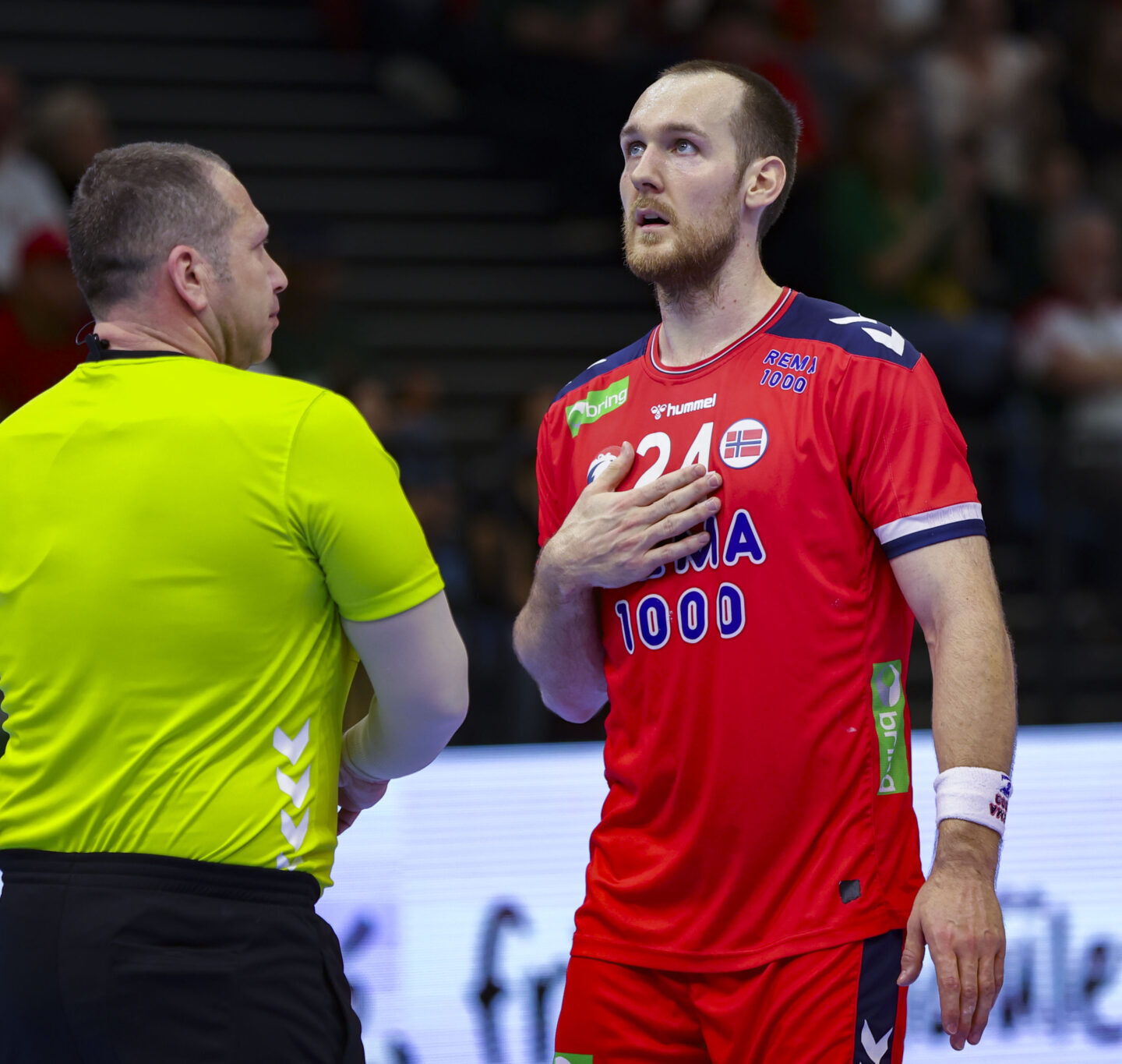 Brasils målvakter var i en egen klasse. Bom, bom og bom. Da våknet Sander Sagosen og Magnus Abelvik Rød med kraft og eleganse offensivt og ga håp om en solid avslutning. Da Rød ble satt på benken, kom Kent Robin Tønnesen inn og viste glimt av gammel storhet. Han sørget for 23-22 ledelse med en klassisk Tønnesen-scoring – med skuddarmen bøyd bakover i skuddøyeblikket og ballen klint opp i vinkelen. Samme mann utnyttet 7 mot 6 spillet og hamret inn 24-23 da det gjenstod syv minutter i Unity Arena. Brassene utnyttet nye norske bom og gikk opp i ledelsen.