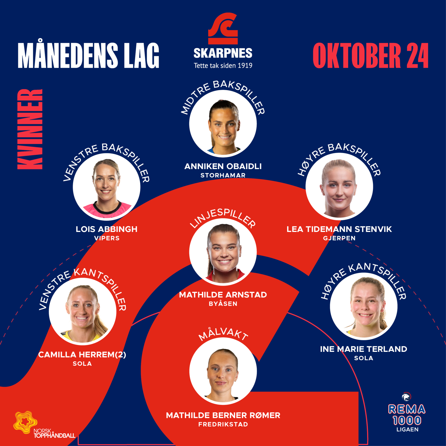 Tertnes: Helle Kjellberg-Line, Kadija Mårdalen – Birgitte Karlsen Hagen 1, Marthe Hatløy Walde 2, Henriette Karlsen Risti 2, Avril Mikkelsen Frei 2, Linn Gossé 1, Henriette Espetvedt Eggen 4, Emma Holtet 5 (2), Martine Hellesø Knutsen, Vilde Janbu Fresvik 3, Maria Bergslien Gald 3, Marie Rokkones Hansen 7