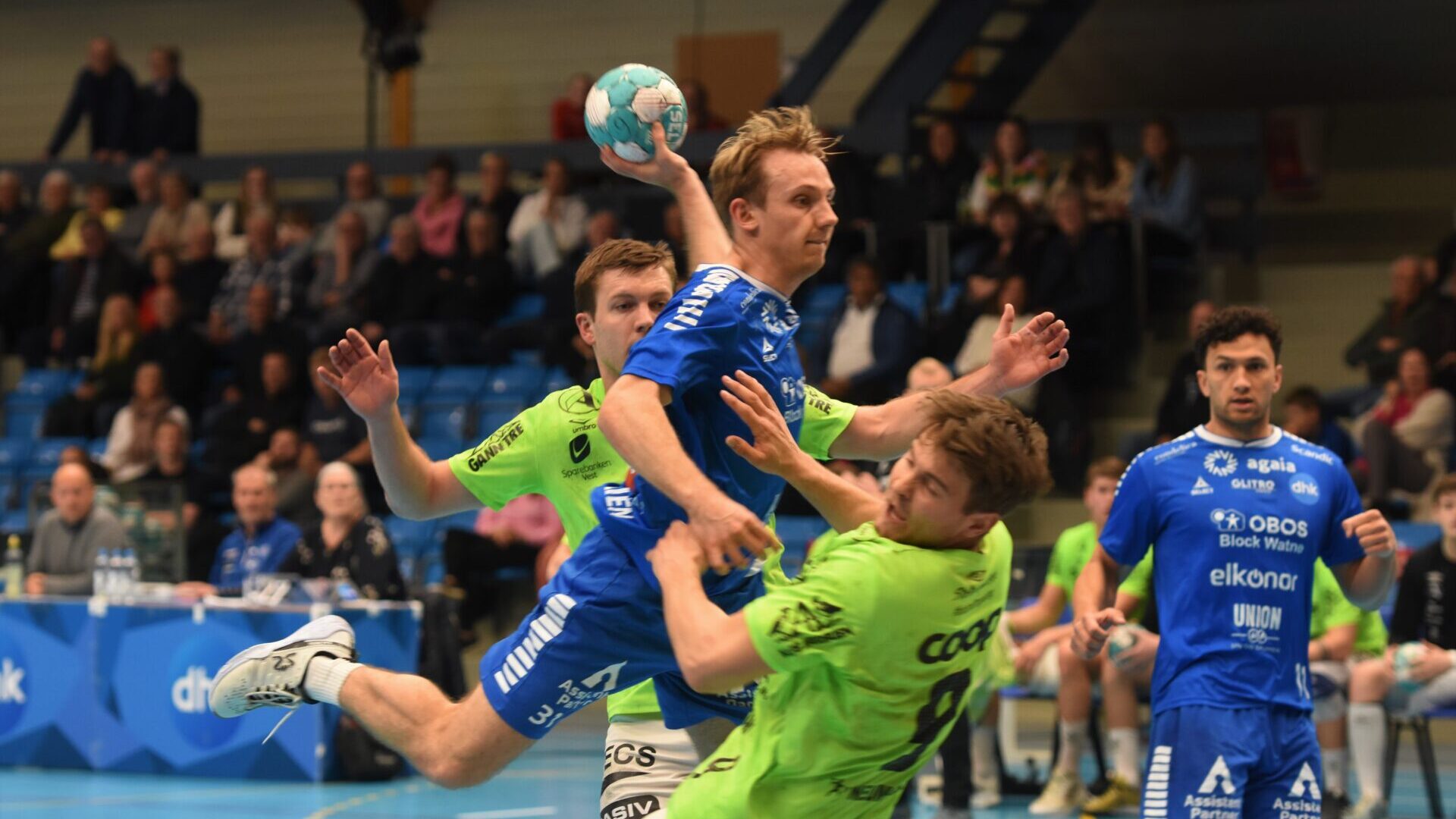 DHK åpnet med litt stang ut og feil, men hentet seg fint inn gjennom friskt forsvarsspill og mange kontringsmål på Nærbøs bomskudd og tekniske feil. DHK ledet 12-6 etter kjappe kontringer av Ola Hoftun Lillelien og noen flotte Sindre Aho-avslutninger fra distanse etter 20 minutter, og de ledet 14-8 etter en periode der Nærbø spilte syv mot seks – og åpent mål. Det utnyttet blant annet August Olsen Storbugt til å sette ballen i det tomme målet.